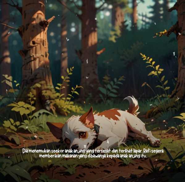 Di sebuah desa di tepi hutan, hiduplah seorang anak laki-laki bernama Rafi. Setiap pagi, Rafi pergi ke hutan untuk bermain dan mengumpulkan buah-buahan. Suatu hari,
